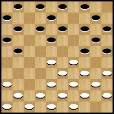 Dans la position du diagramme, c'est aux noirs de chercher la remise. Il faut laisser le plus longtemps possible le pion 21 staionné et jouer plutôt 43-39 (idée de remonter ensuite 48-43) ou, à la rigueur 40-35 (qui facilite un peula vie aux noirs). Les noirs auront bcp de mal à jour compte tenu de la mauvaise position des pions 6 et 7. Certes, il y a de surprenantes ressources tactiques