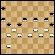 Dans cette position le gain s'obtient par 6-11!! pour empêcher les blancs d'aller damer en 1 ce qui menacerait 34-29.