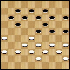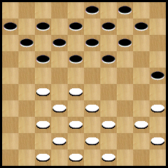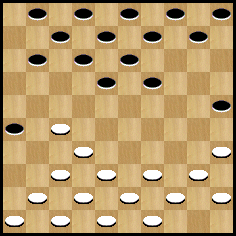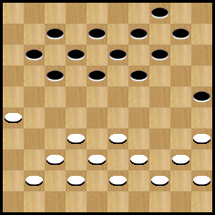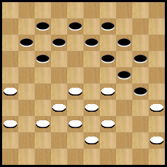 JPD : la position des noirs est à présent probablement perdante. Que jouer ? Après (11-16), (12-18) ou (13-18) les blancs combinent de manière simple et sur (14-20), les blancs gagnent également par une combinaison commençant par 34-30x18. Il ne reste donc que :
