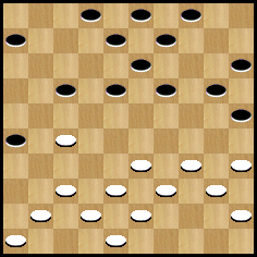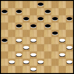 KM : les blancs ont presque une position modèle pour une position classique/semi classique, sauf que les noirs ne sont pas dans une position centrale classique. Qui plus est, le pion 27 n’est pas très bien soutenu. On peut très bien argumenter que les blancs ont au moins le contrôle de 27 et que les noirs ont le celui de 24. Je préfère toutefois largement le jeu des noirs, car je ne vois pas comment les blancs peuvent créer un centre qui mette en danger les noirs