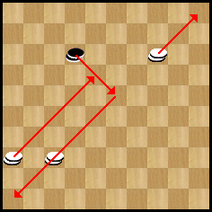 Afin de capturer une dame adverse, une formation de "crochet" est souvent nécessaire. Le crochet est constitué généralement de deux pièces (pions ou dames) séparées par une case vide, destinée à "recevoir" la dame menacée.