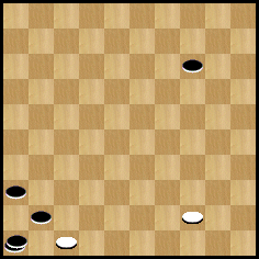 - dans une fin de partie où les noirs ont trois pions (ou plus) ayant la possibilité de se déplacer, alors au moins l’un de ces pions devra exécuter plus d’un mouvement avant l’apparition de la position finale. Autrement, le sacrifice de tous ces pions par un, deux, ou trois mouvements consécutifs dans n’importe quel mouvement de la fin de partie n’est pas considéré comme faisant partie du développement du jeu et n’est pas admis.