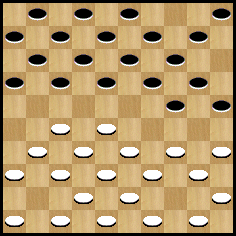 Sur (17-22) 28X17 (11X22) 46-41 (24-30) etc... partie peu avantageuse pour les noirs également__ ici, si les noirs avaient joué (05-10) au 4éme temps au lieu de (04-10) comme dans le texte , les blancs pourraient compliquer la partie en attaquant par 34-30, les noirs ne pouvant en effet répondre par 20-25 qui livrerait un coup de dame par 46-41, 40-20,35-30,28-22,38-33 et 32-05.