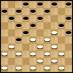 J’ai envisagé un plan de jeu qui semble maintenir l’équilibre : 31… (12-17). Ce coup interdit directement 28-23 par le collage (14-19). 38-32 n’est pas bon non plus après (14-19) 44-39 (19x30) 35x24 (17-22) (18-23) et (16-21) après les prises. Après 31-27 (17-21) 37-32 [sur 38-32 (14-19) puis (18-23)] (8-12) 44-39 (6-11) et les Blancs ont des problèmes.