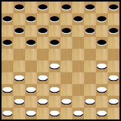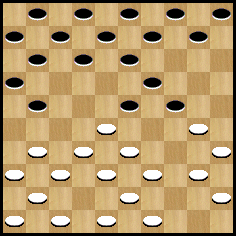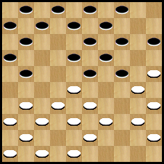 Fin du début de partie. Les Blancs ont créé une pression sur la case 28, mais les Noirs peuvent temporiser. Je vous invite à poursuivre la partie avec l’analyse d’Anatoli GANTWARG pour vous faire votre propre idée.