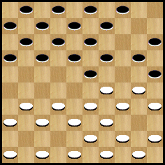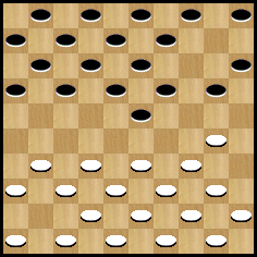Après l’échange (22-27) 31x22 (18x27) 32x21 (16x27) 29x18 (13x22) 50-44, j’ai une préférence pour le jeu des Blancs.